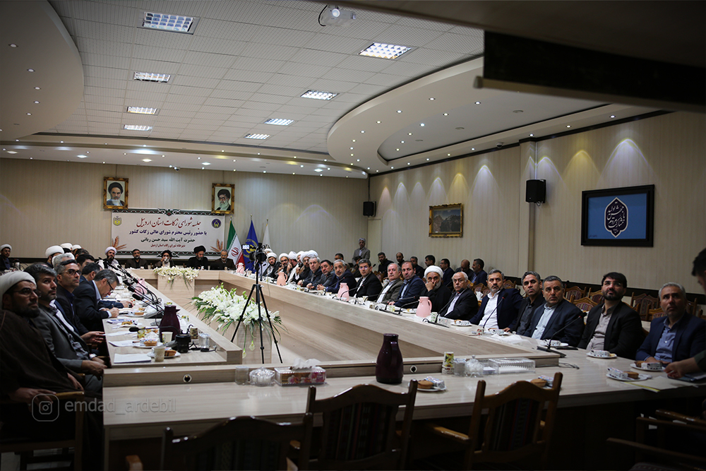 جلسه شورای زکات استان اردبیل با حضور رئیس شورای عالی زکات کشور، رئیس شورای زکات استان اردبیل، استاندار، رئیس جهاد کشاورزی، مدیرکل اوقاف و امور خیریه، ائمه جمعه، فرمانداران و سایر مسئولان استان اردبیل در سالن جلسات شهید رجایی استانداری اردبیل برگزار شد.